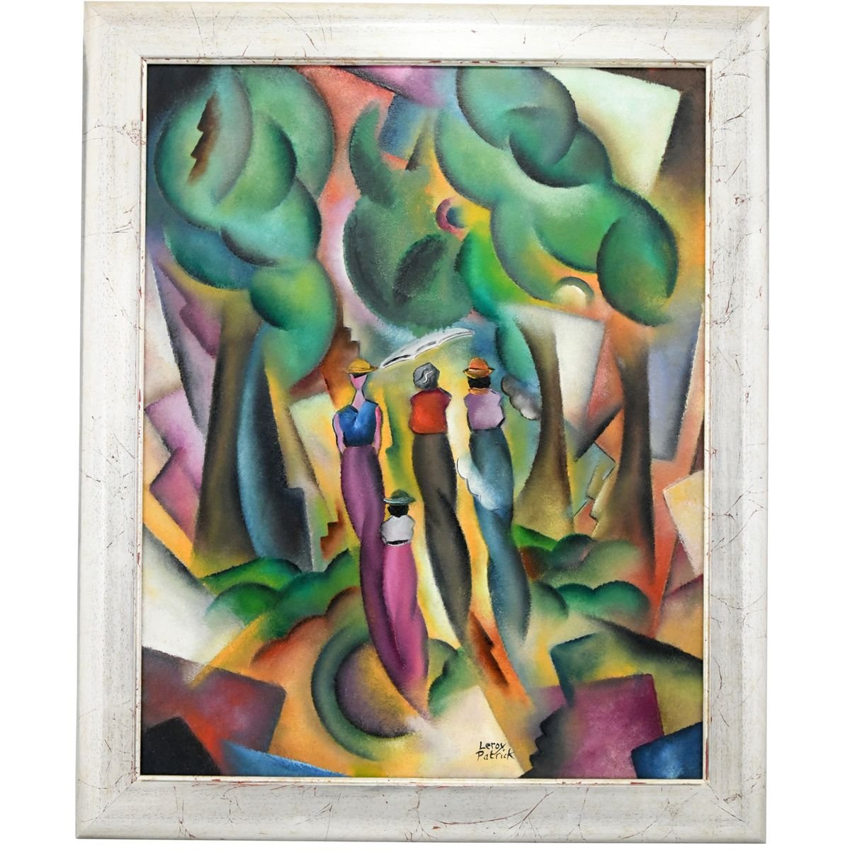 tableau art deco d une dame dans une foret par patrick leroy en vente sur pamono