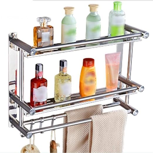 porte serviette de salle de bain sans vis etagere de rangement pour serviettes cuisine torchons muraux en acier inoxydable sans percage double couche 50cm amazon ca maison