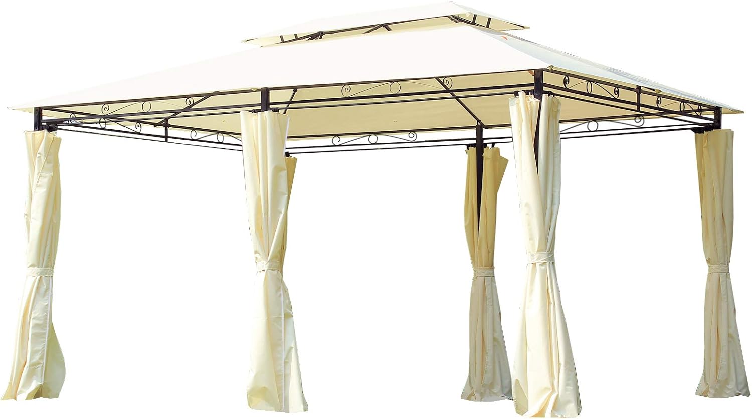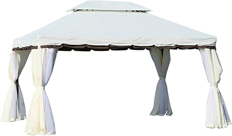 outsunny tonnelle barnum pavillon de jardin style colonial double toit toiles laterales amovibles 3l x 4l x 2 65h m creme amazon fr jardin