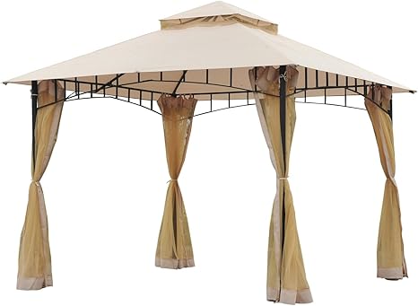 outsunny tonnelle barnum style colonial dim 3l x 3l x 2 7h m double toit 4 moustiquaires laterales avec zip beige amazon fr jardin