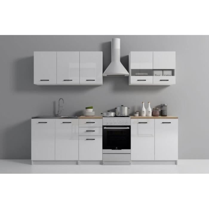anine cuisine complete modulaire lineaire l 200 cm 6 pcs plan de travail inclus meubles cuisine finition gloss blanc cdiscount maison